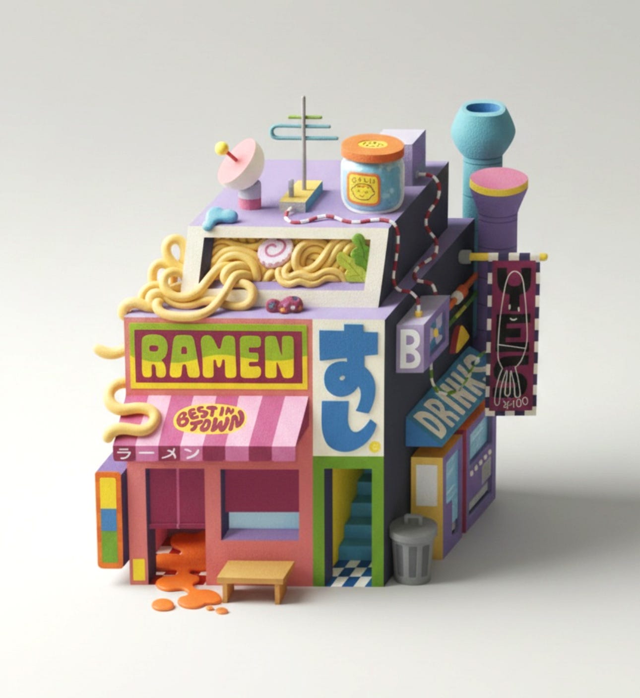 We’ve chosen not to freeze, but instead to adapt to these changes while also strengthening those deeply human aspects that are harder to replicate artificially. As you know, one of these creative explorations has been painting large-scale canvases. These are 2x2 meter pieces where we create a series of colorful buildings. Unlike our usual work, there are no characters and no outlines at all. So far, we’ve completed four paintings, and we’re thrilled with the results. We love the palette we’ve developed, the strength and impact of the pieces, and not to mention the joy of the process itself: brushes in hand, acrylic paint on our fingers... truly soothing and healing in these times of endless screens.